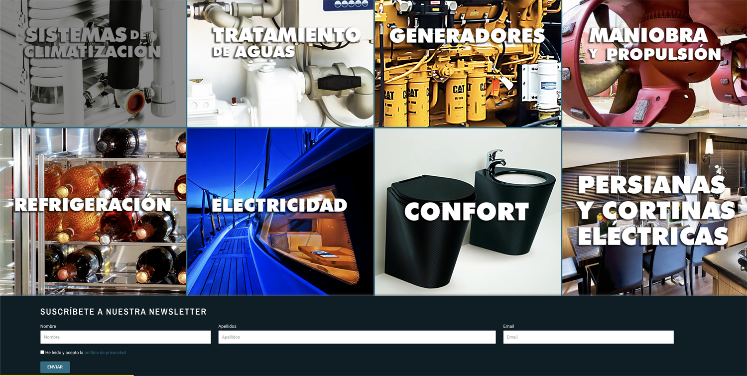 Se creó una estructura más simple para facilitar la navegación por parte del usuario. Creamos catálogos de todos los productos para poder usar tanto físicamente como colgados en la página web como PDF. Se creó un menú en la página inicial basada en botones con imagen para facilitar la navegación en dispositivos móviles e ir más directo a lo que nos interesaba que el usuario visitara. De hecho, la web no era adaptable a los dispositivos y se hizo un diseño responsivo para su adaptabilidad.